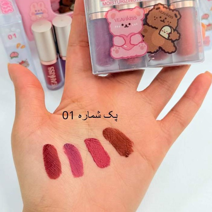 پک رژ لب مایع 4 عددی براق یاکیس YEAHKISS مدل خرسی