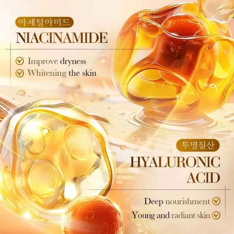 گلیسیرین، هیالورونیک اسید، نیاسینامید، آربوتین، ویتامین E، عصارههای گیاهی